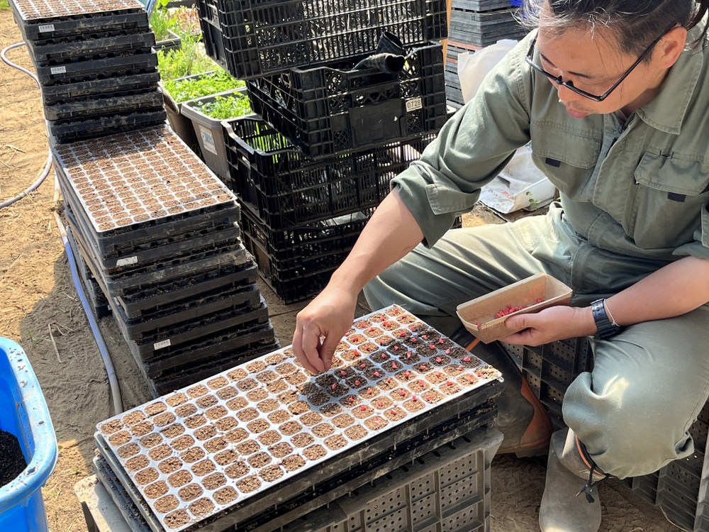 毎年4月~6月にかけて、手作業で種をまき育苗していきます。