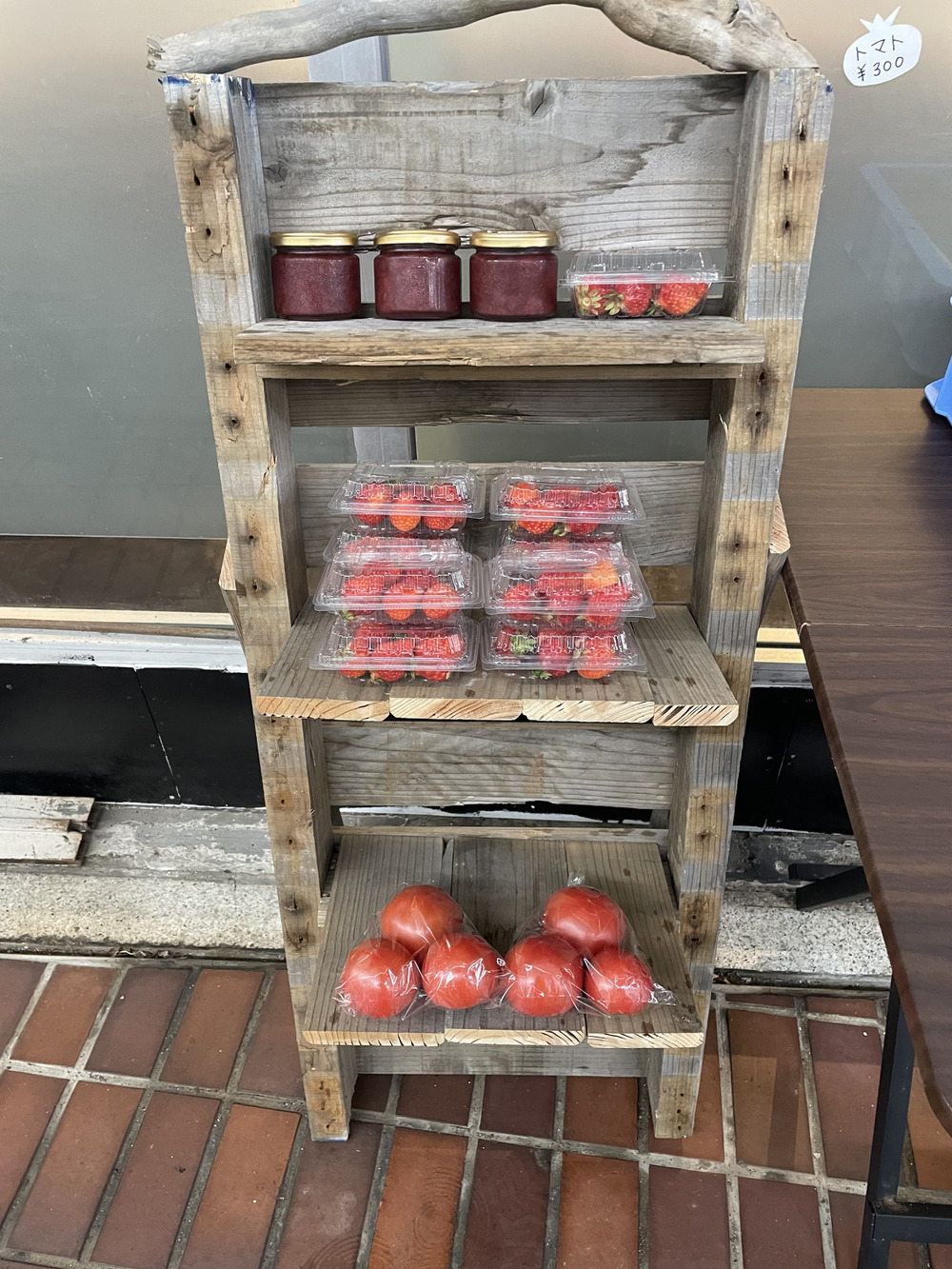 今年から川村菜園では、より地域の方にも美味しい野菜やフルーツを食べてもらえるように、パレットを加工した小さな棚をお店に置かせていただいてます🍅