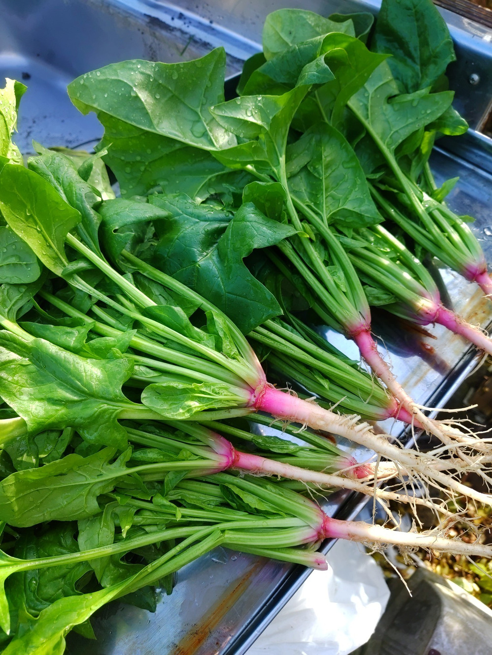 枝豆などが終わり葉物野菜が充実しています。しろ菜に三池高菜(小)、ほうれん草など。 あとは聖護院大根(丸大根)がやわらかくて甘くておすすめです! 100サイズにいっぱい詰めて送ります(*^^)v