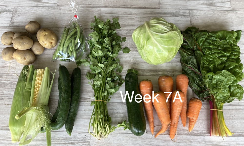 じゃがいも(キタアカリ)・インゲン(又はその他夏野菜)・パクチー・キャベツ・スイスチャード・人参・ズッキーニ・きゅうり・とうもろこし