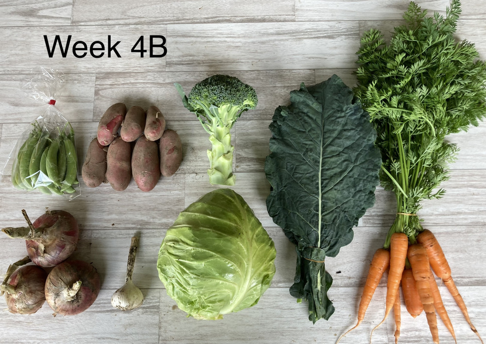 スナップえんどう・じゃがいも(シェリー)・ブロッコリー・赤玉ねぎ・にんにく・キャベツ・ケール・人参