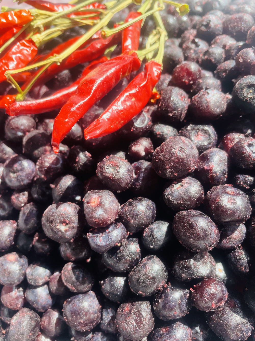 それと最近は、新作ジャム「HOTブルーベリージャム」の試作を進めています。(パートナーのエシカルブランド・商品開発担当のRomioRi考案) ブルーベリージャムに唐辛子を合わせたものです🌶️