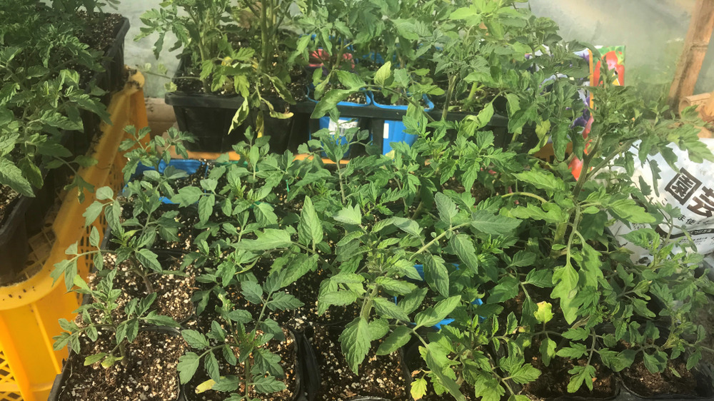 花がついた苗もちらほら。赤々と実ったトマトをお届け出来るのはまだ少し先ですが是非お楽しみに!!