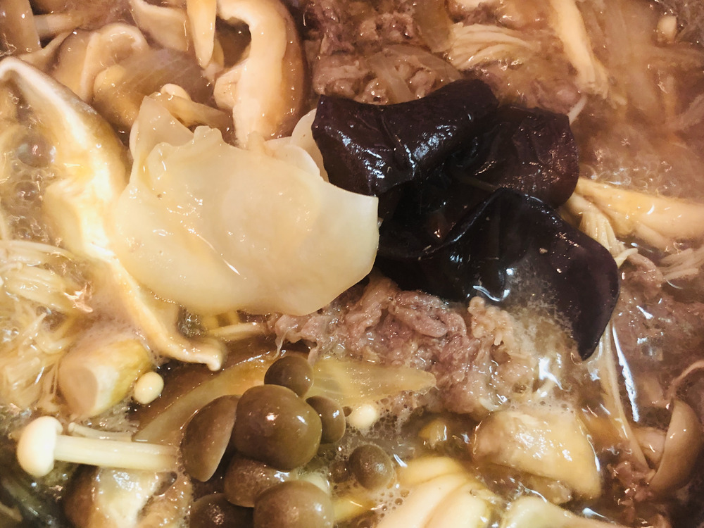 現在作成中「 高知県産キクラゲとキノコたっぷり牛丼」