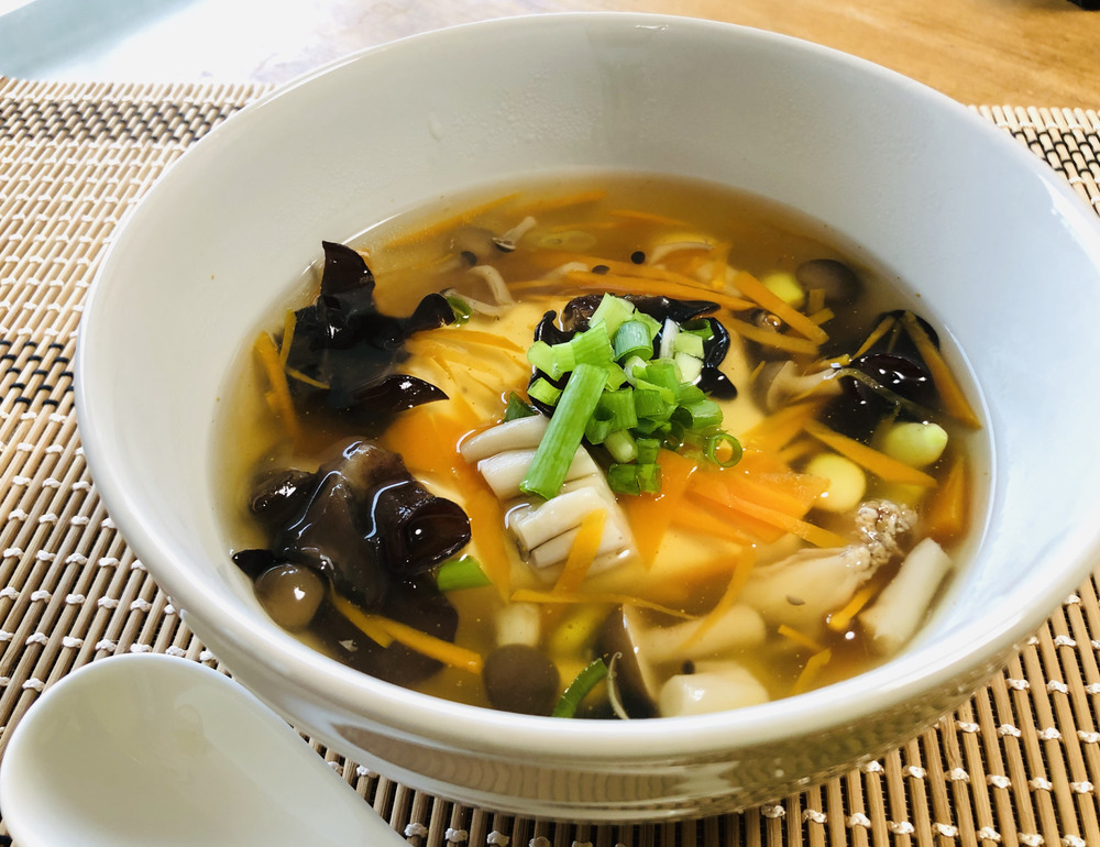 枝豆、人参🥕、シメジ、仁淀川きくらげ を使用