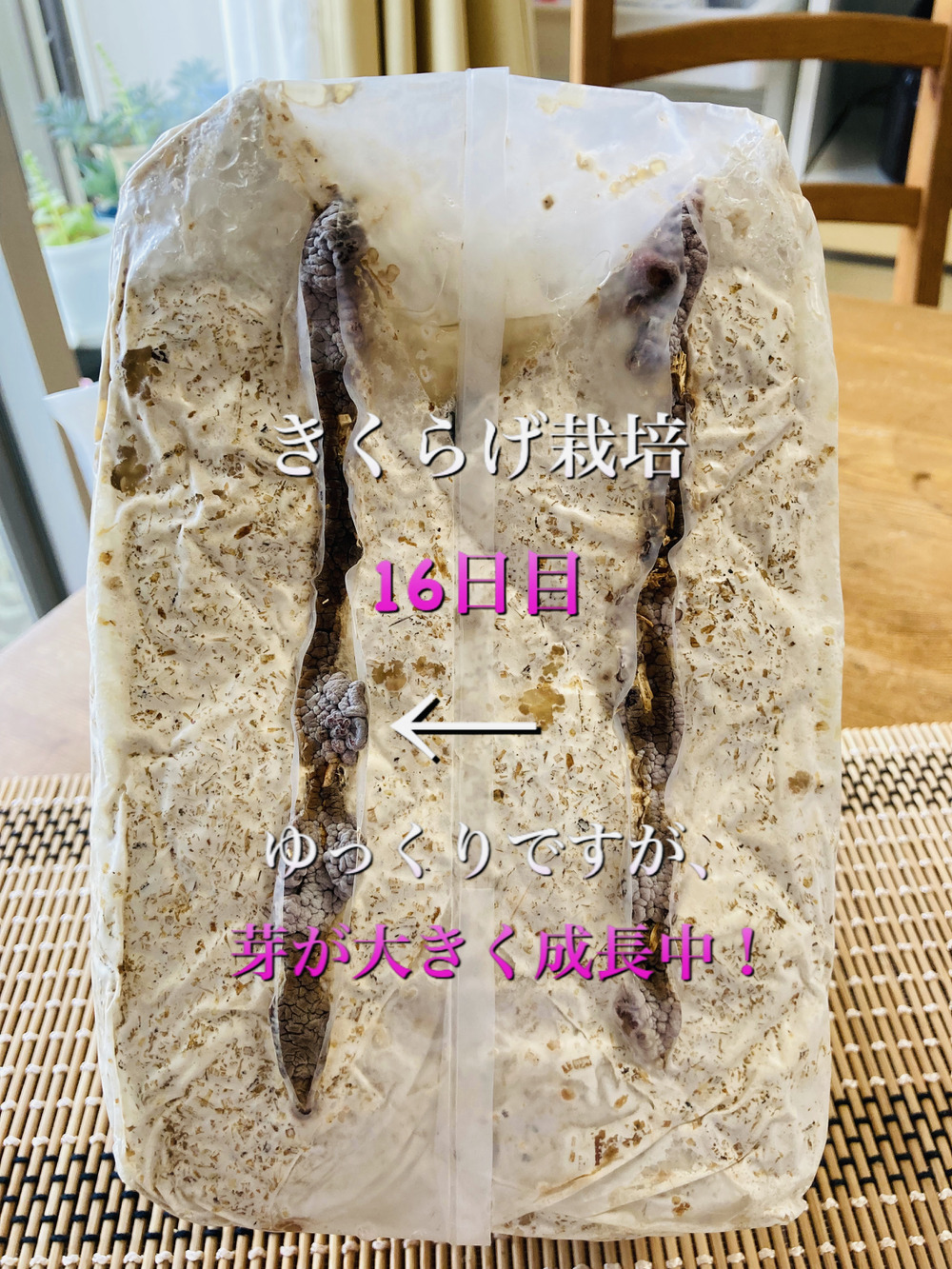 本日最終注文受付 「自宅できくらげ栽培16日目」