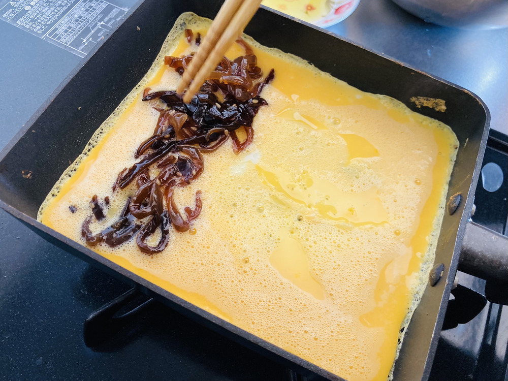 きくらげの佃煮と卵で作る、不老長寿👏のめでたい「卵焼き」!
