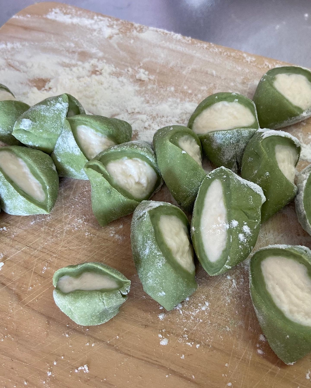 青汁パウダーを使用した2色の水餃子を作りました🎵