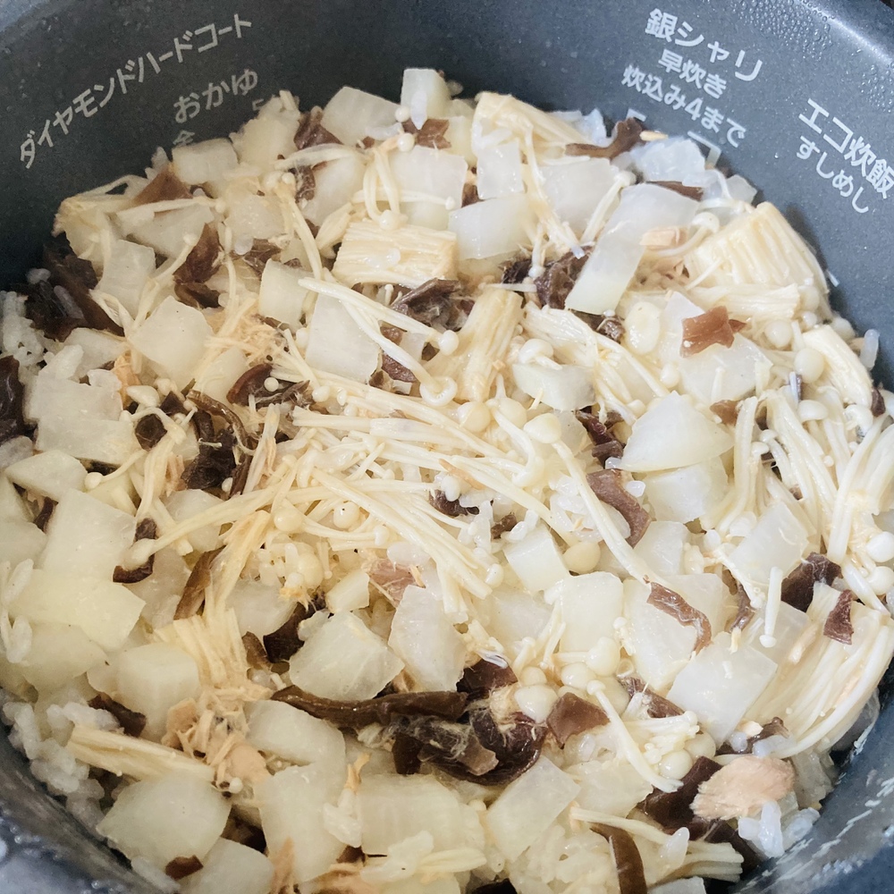 『鳥肉と大根ときくらげの炊き込みご飯🥢』