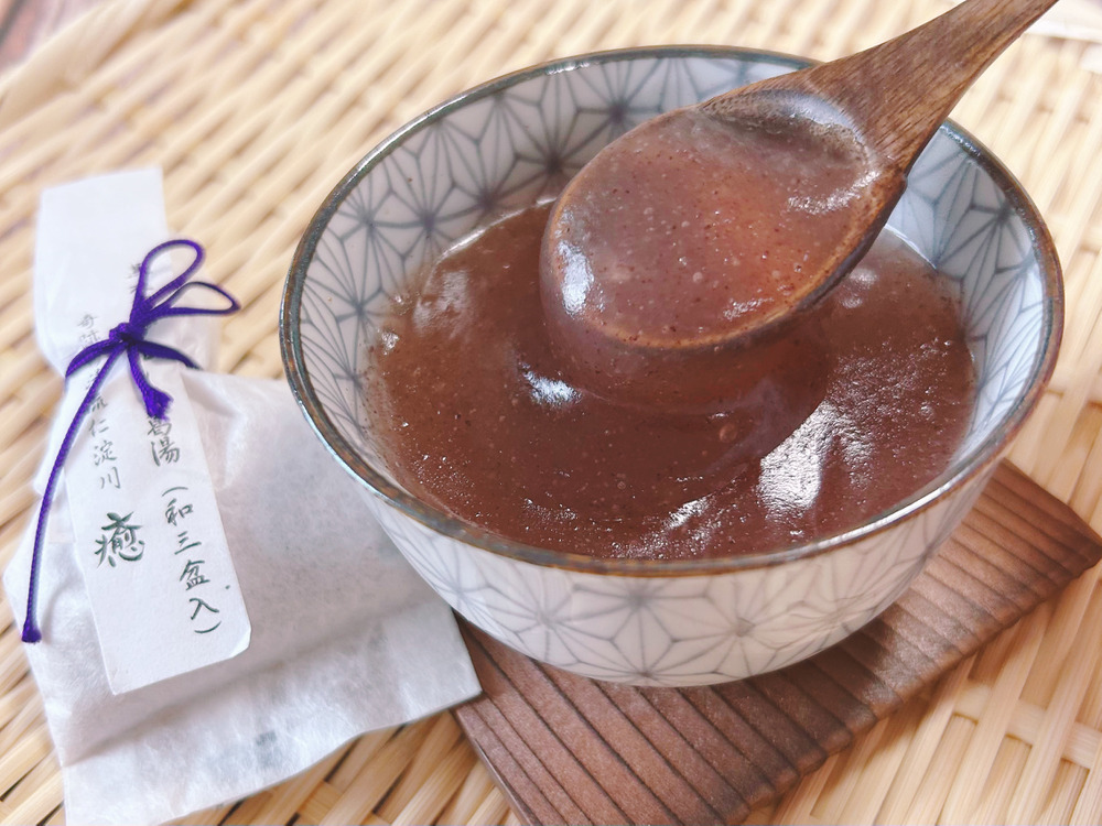 香り深い奈良県産の茶葉を使用した上品な味わいと、「黒あらげきくらげパウダー」を組み合わせた葛湯。女性に大人気で、カフェで飲むような高級感ある味わいを堪能できます。