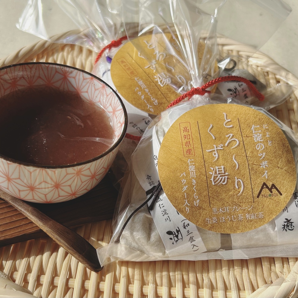【冬はやっぱりこれ】「とろ〜り葛湯」 8杯分(30g×4種類の味×2セット) プレーン味、生姜味、ほうじ茶味、和紅茶味。【高知県仁淀川町産きくらげパウダー入り】ユーパケット投函