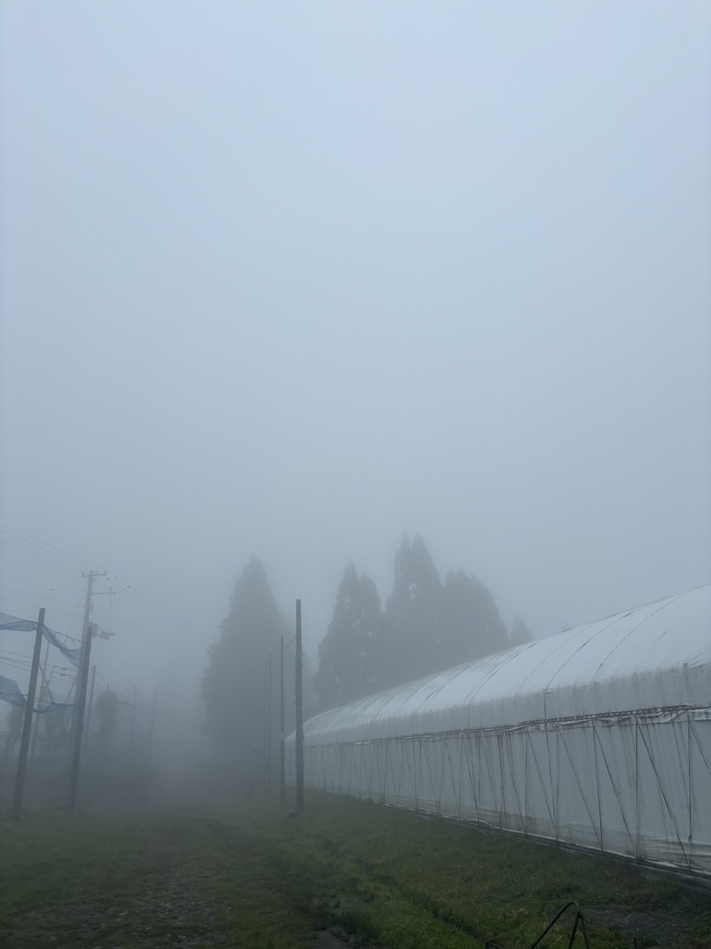 標高750Mのきくらげ栽培ハウスでは、天気の移り変わりが激しく、これからの季節は雷が多いんです😱写真のような感じで霧が全体を覆い隠して空がピカピカ✨ゴロゴロ⚡️って感じです。