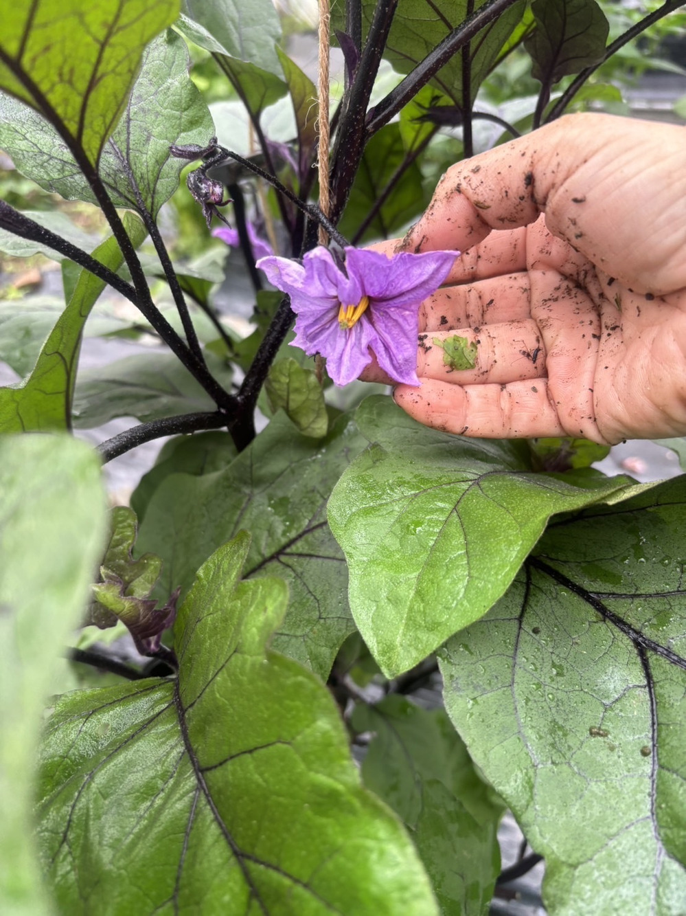 1-2年自然に熟成させた土をブレンドして、野菜や花を植えている、きくらげ女子の今日の収穫は...