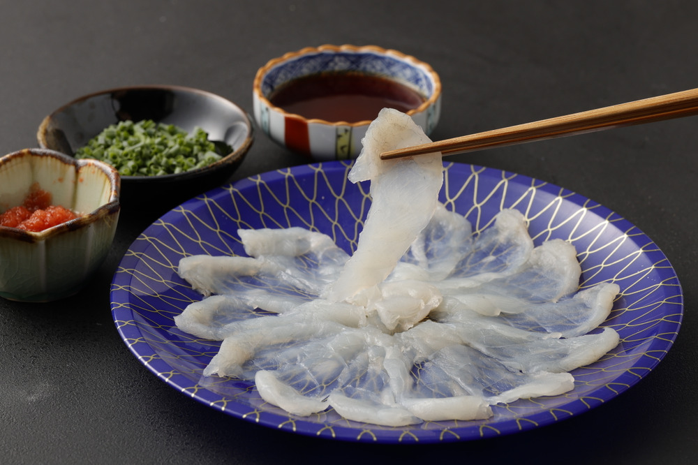 刺身で食べる場合は、ふぐの歯ごたえと真鯛の滑らかさを存分に楽しめます。