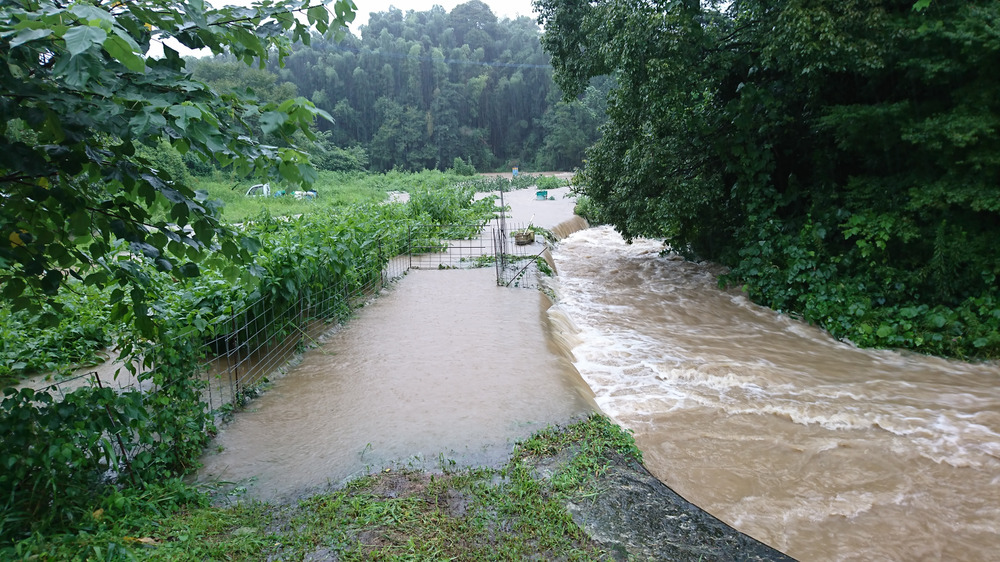 8月11日から降り続いている大雨により、14日には八女市にも特別警報が発令され当園の菊芋圃場はほぼ水没してしまいました。