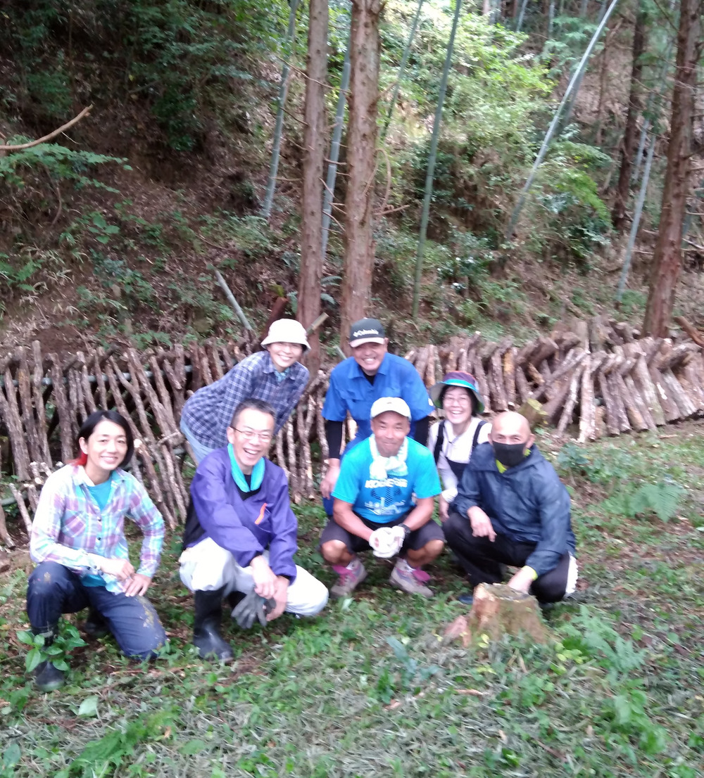 メンバーの一人が昨年からしいたけ研修で原木作りに挑戦しており、出来上がった原木を竹林で育てることになりました。