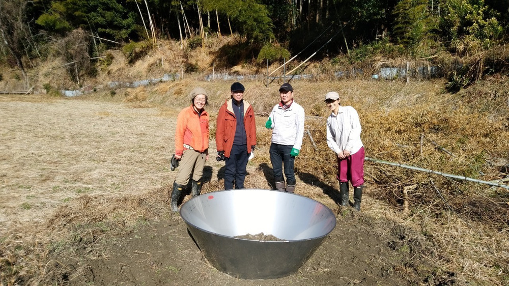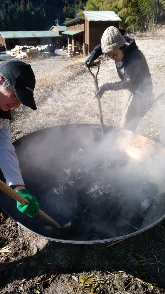 竹林整備で出た竹を土壌改良材にするため、炭化器を使って試作をしました。