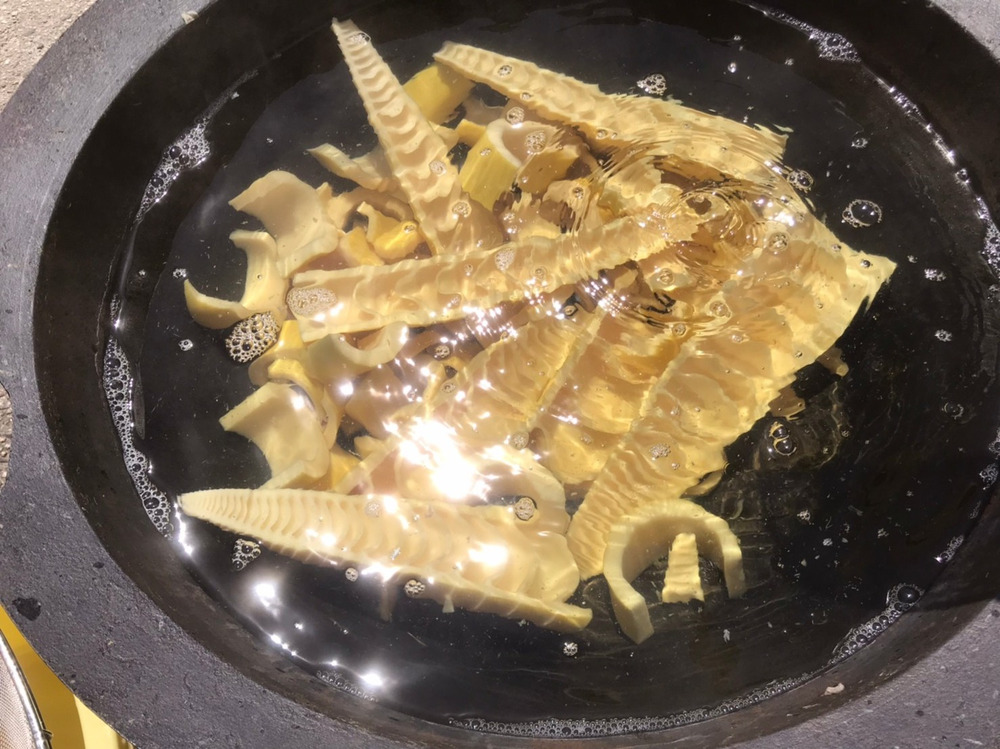 イノシシに食べられずに育った幼竹があったので、自家用でメンマを仕込みました。