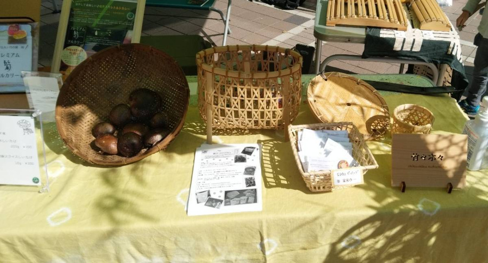 メンマなどの食品だけでなく竹細工や竹染めも展示して、ちくもく工房の活動を紹介しました。竹林や里山を身近に感じていただく良い機会となりました。