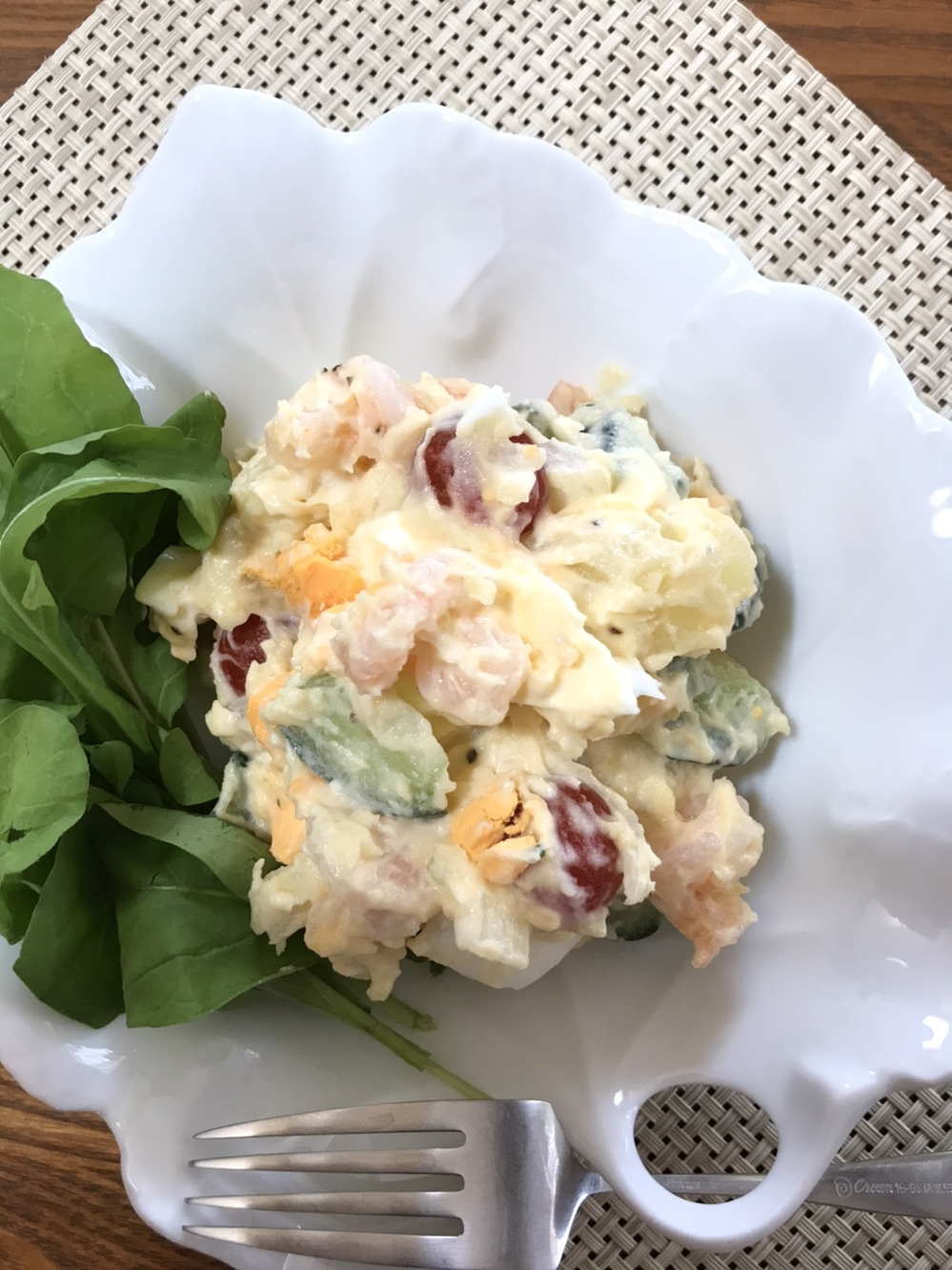 画像のポテトサラダはむき海老入り(^-^)