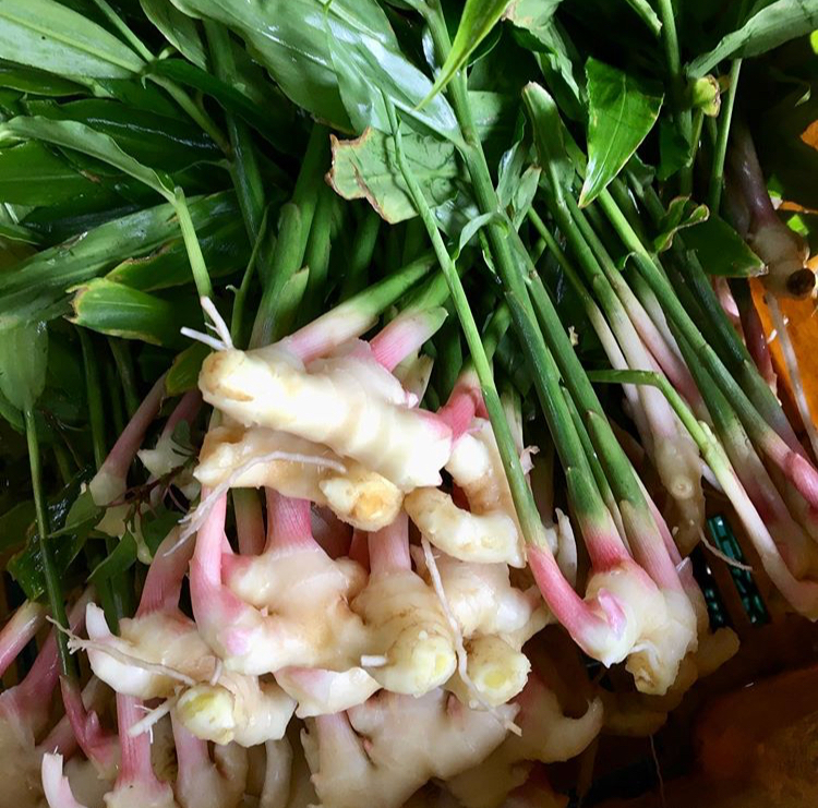 葉生姜に豚バラ肉を巻きつけ、フライパンで焼いたら出来上がり♪味付けは、醤油や塩胡椒で…!