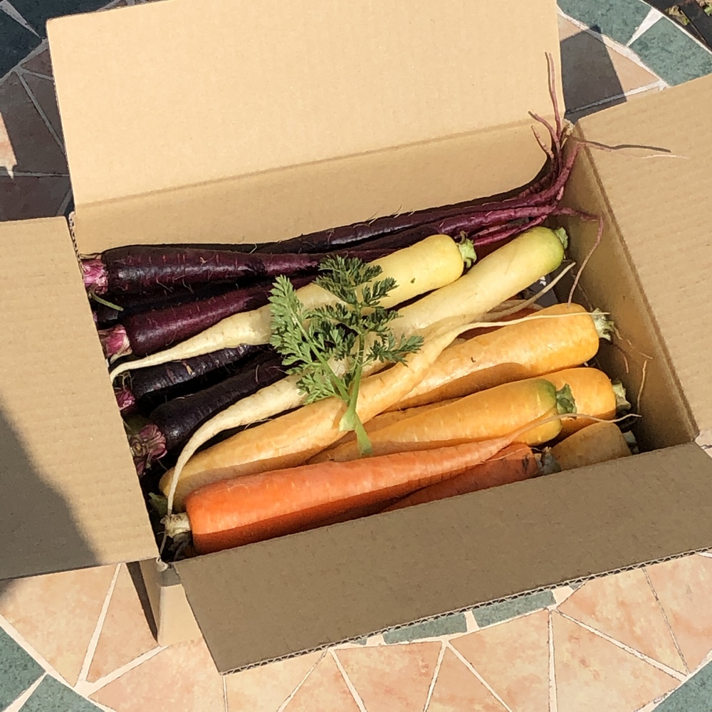 本日1時まで限定で、レインボー人参2キロの詰め合わせboxを販売中です😊