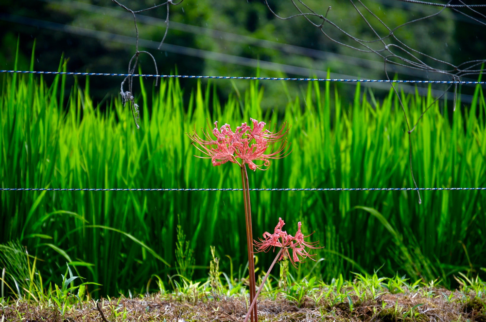 なんと、彼岸花がこの時期に、一輪ですが咲いていてびっくりしました。うちの田んぼの場合は、例年だと9月に入ってからですね。