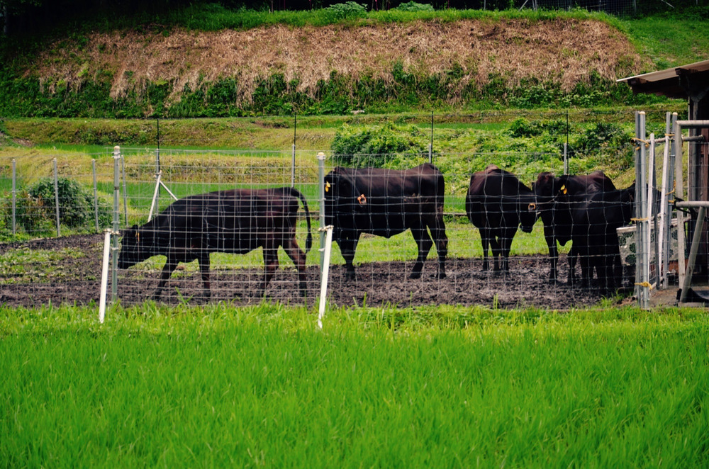 田んぼの肥料を提供してくれる、可愛い牛たちです。