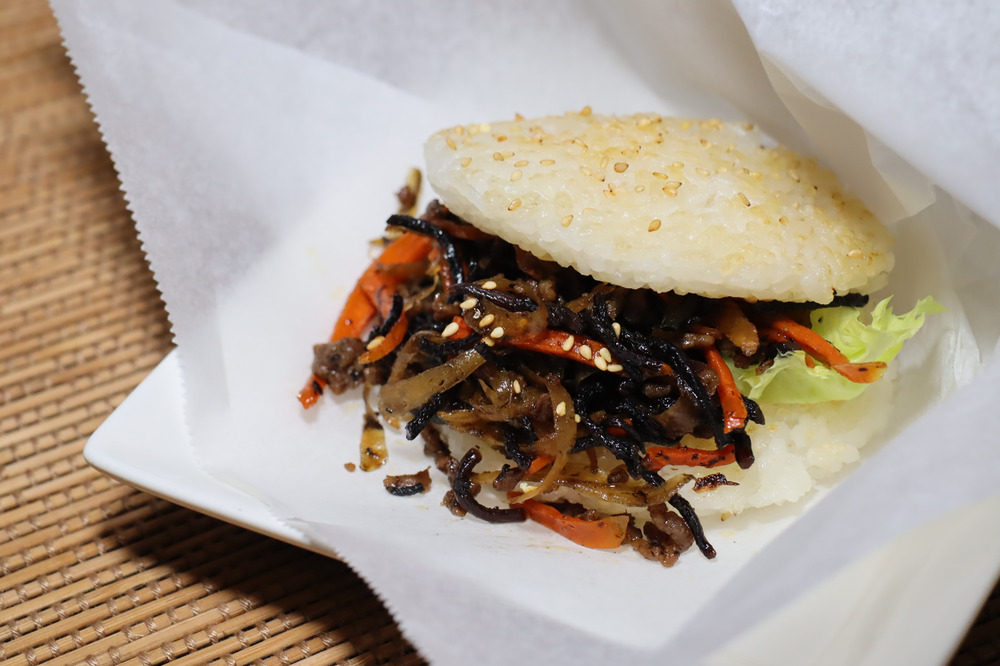 ごま油でライスを焼いて、胡麻をふりかけ・・・