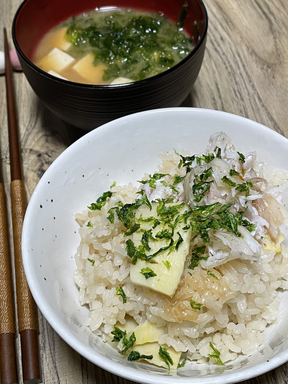 今日は、筍ご飯に