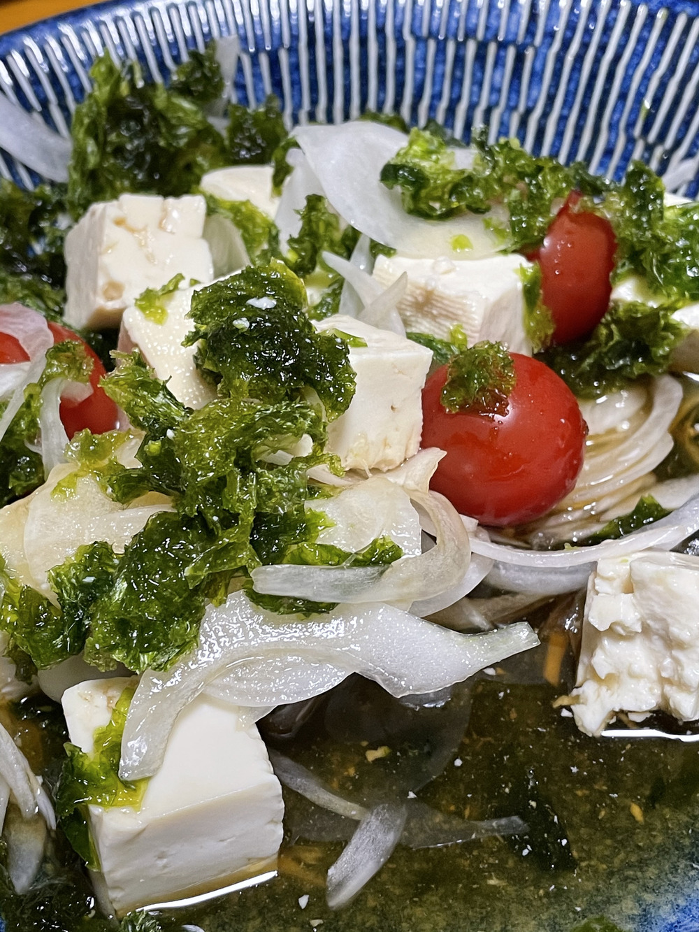乾燥のままアオサを、お豆腐にのせて麺つゆかけるだけ〜😀こんなかんじ!クオリティ低笑