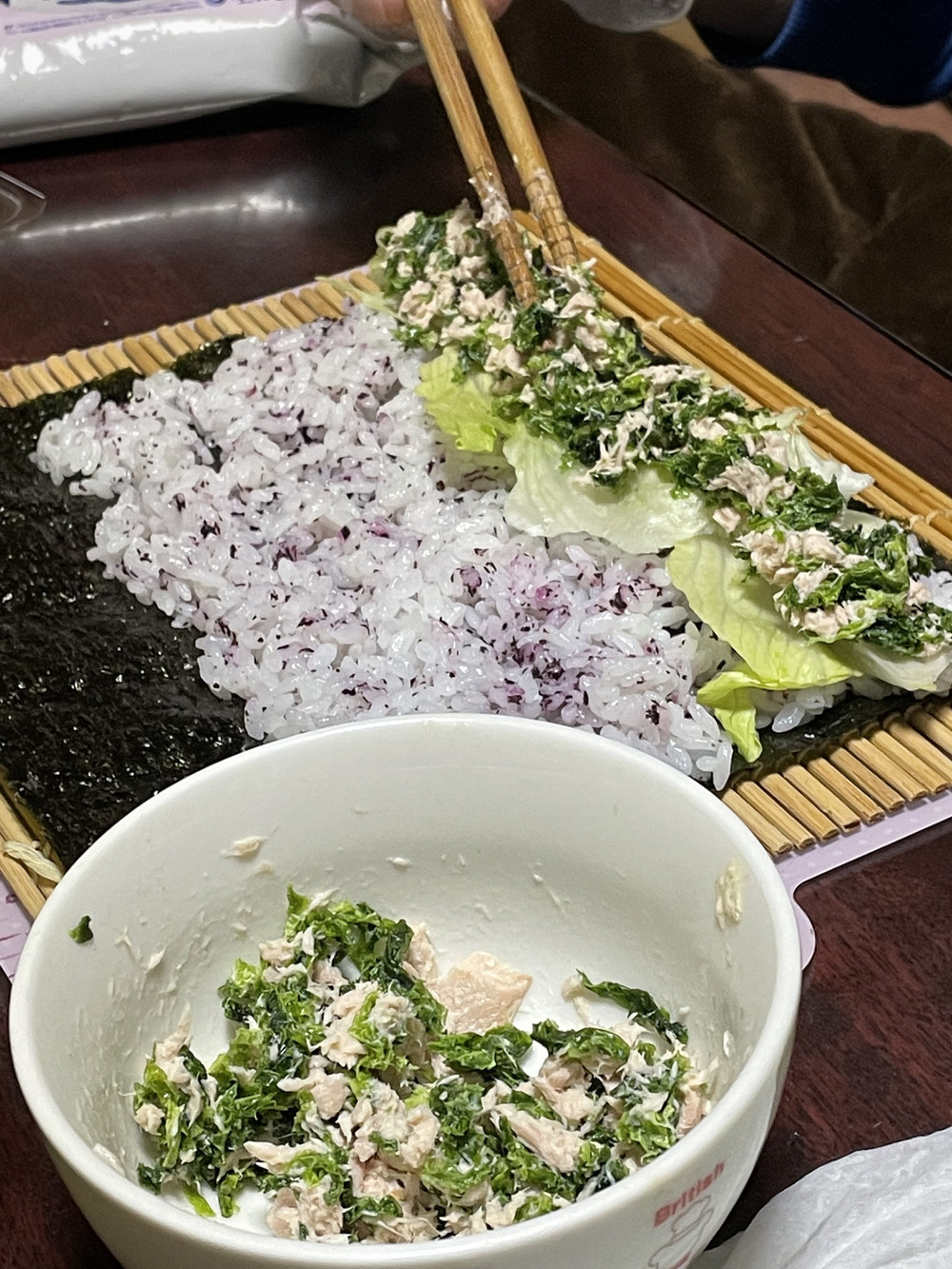 唐揚げまきって言ってた旦那もアオサツナ巻きばかり食べる💕