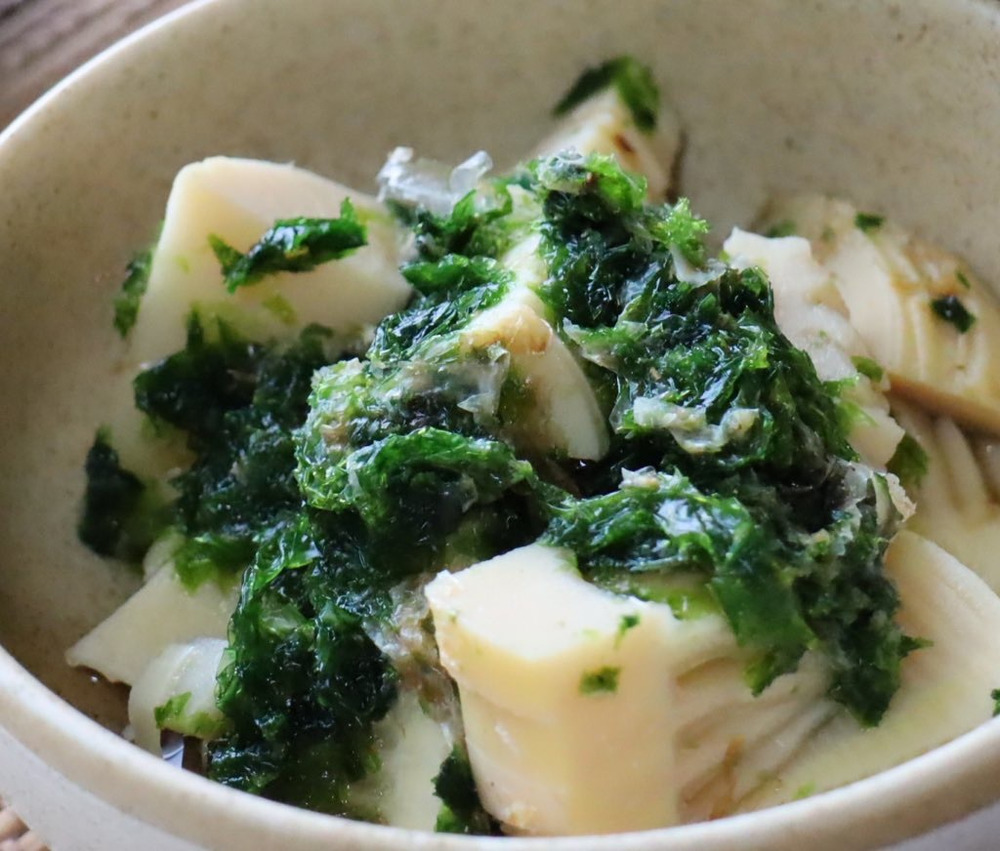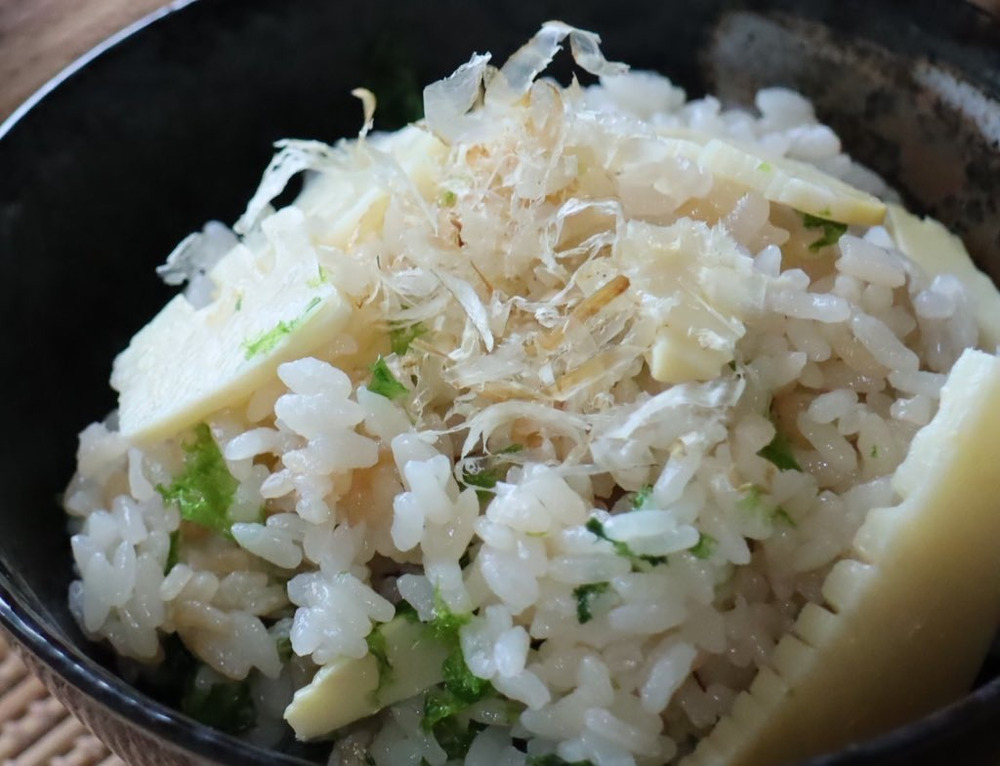 筍飯に硬く絞った戻したアオサ混ぜ。