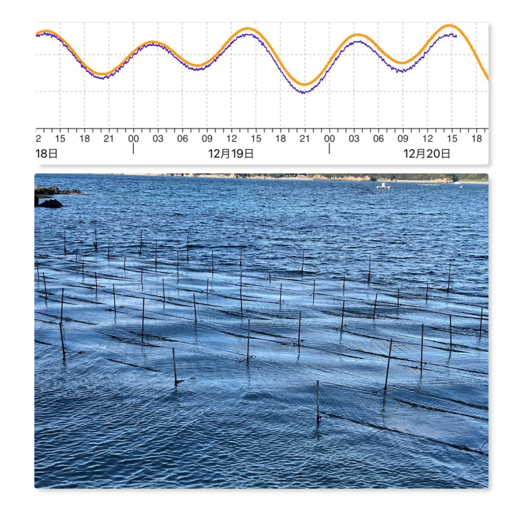 前回の投稿(12/17)で「潮位が低いかも?」と言いましたが、潮位が基準より低すぎて二日も網が浸かりませんでした。