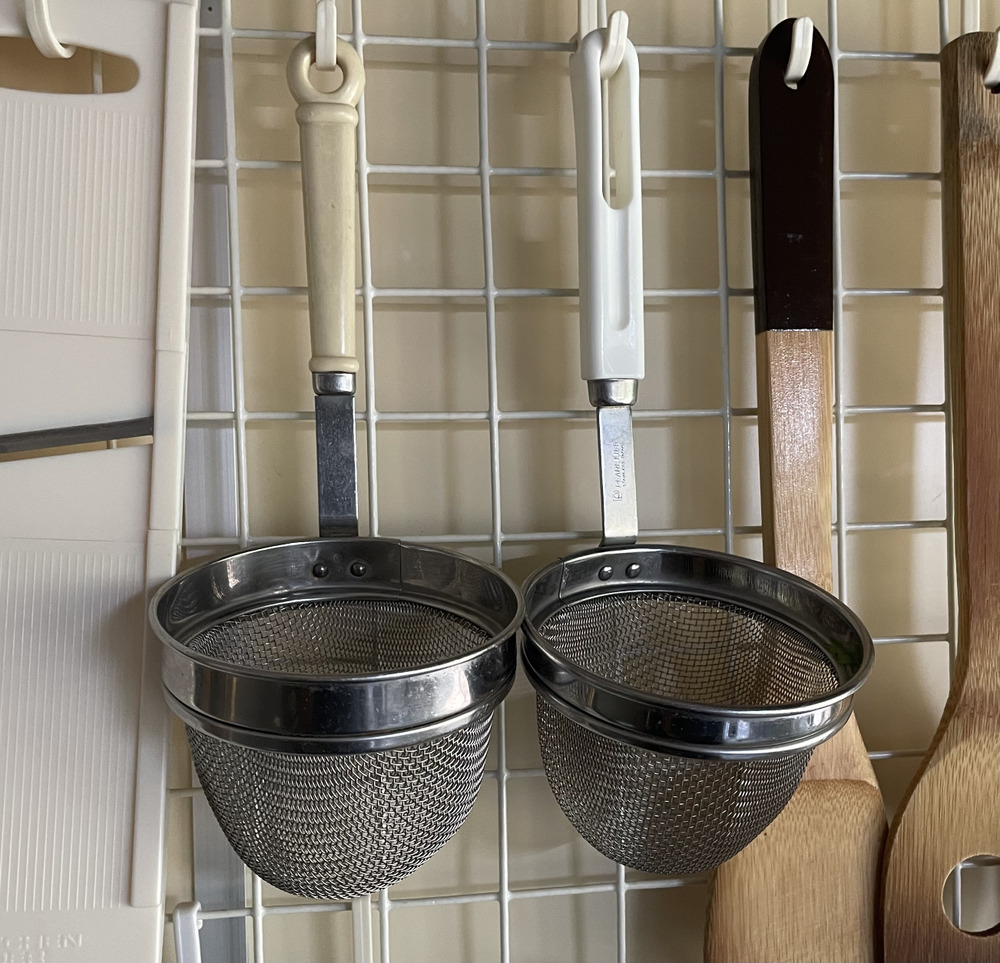 あと、アオサを使っていく上で活躍するのが写真のような味噌漉しです。