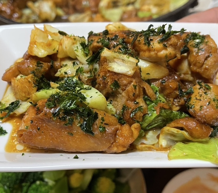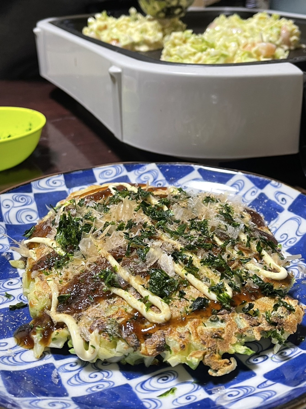 アオサは水戻しを水切りしました、茹でたメカブと一緒にご飯に載せて、麺つゆをかけただけ。