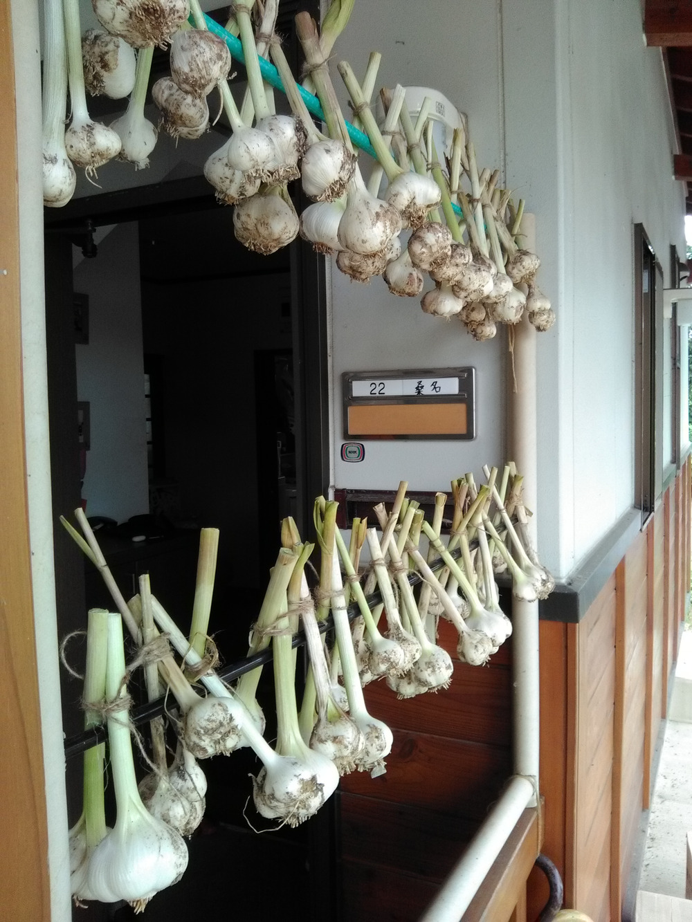 今の時期限定で、小さくて販売に向かないニンニクを2個お付けします。(アスパラのおまけです)