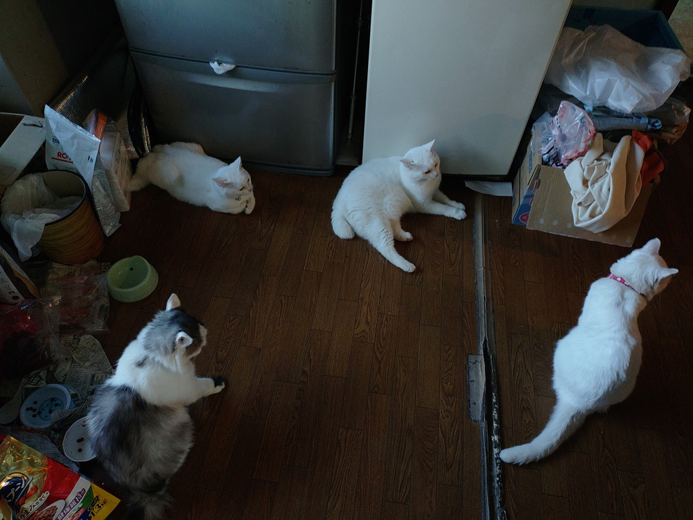 皆さん 夏バテ 大丈夫でしょうか 猫たちも毎日集まってます、今日は久々に猫たちの写真を投稿です