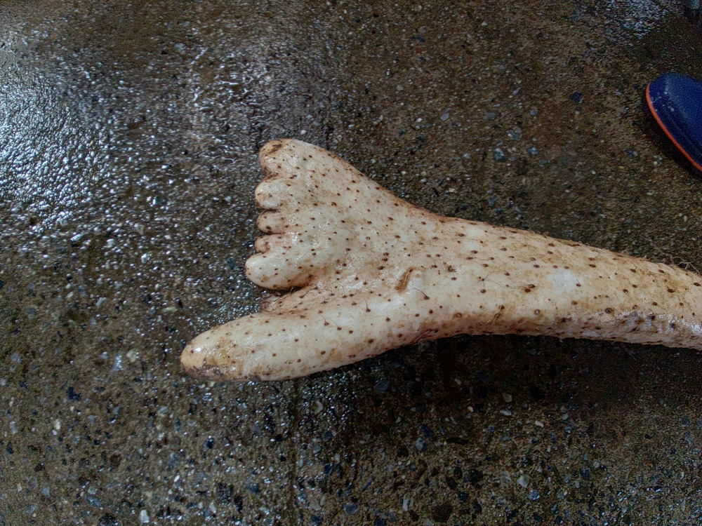 そんな中 こんな足のような長芋をいただきました、食べるのもったいないと思っていましたが落として割ってしまった😱