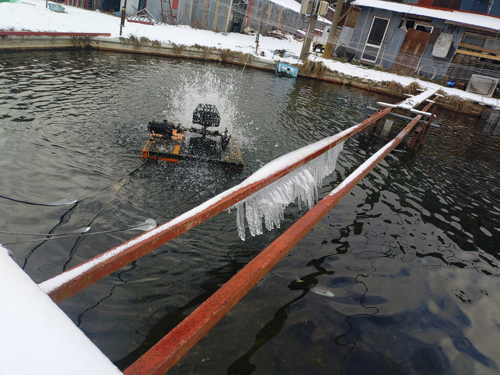 今日の写真は養殖場の生け簀です つらら 生えてます、私が小さい頃はよく 屋根にぶら下がった つららを追って舐めてました、アイスキャンディーだと、今そんなことしたらすぐネットニュースになるのかな?