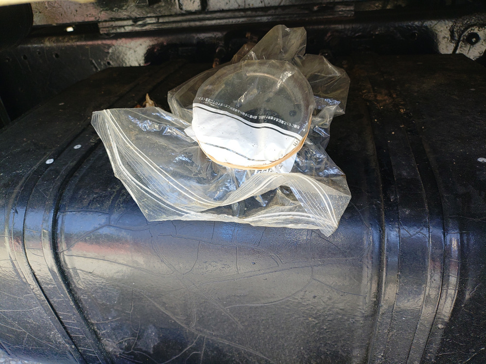 見てください 給油口 蓋をなくしたみたいで ジップロックで止めてました 笑える