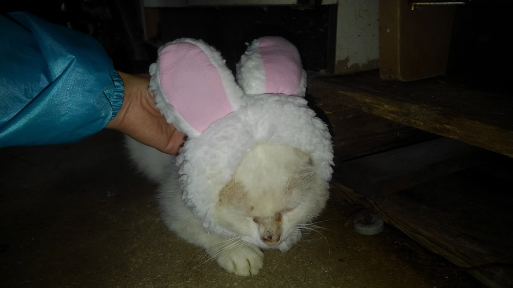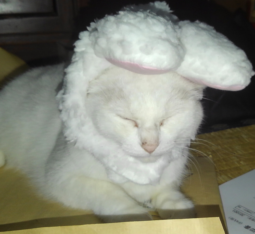 ネットでうさぎの耳を買ったので 猫にかぶせてみました なかなか上手に被せられませんでした うちの猫には 似合わなかったです 今度 ライオンの耳買ってみようかな😅