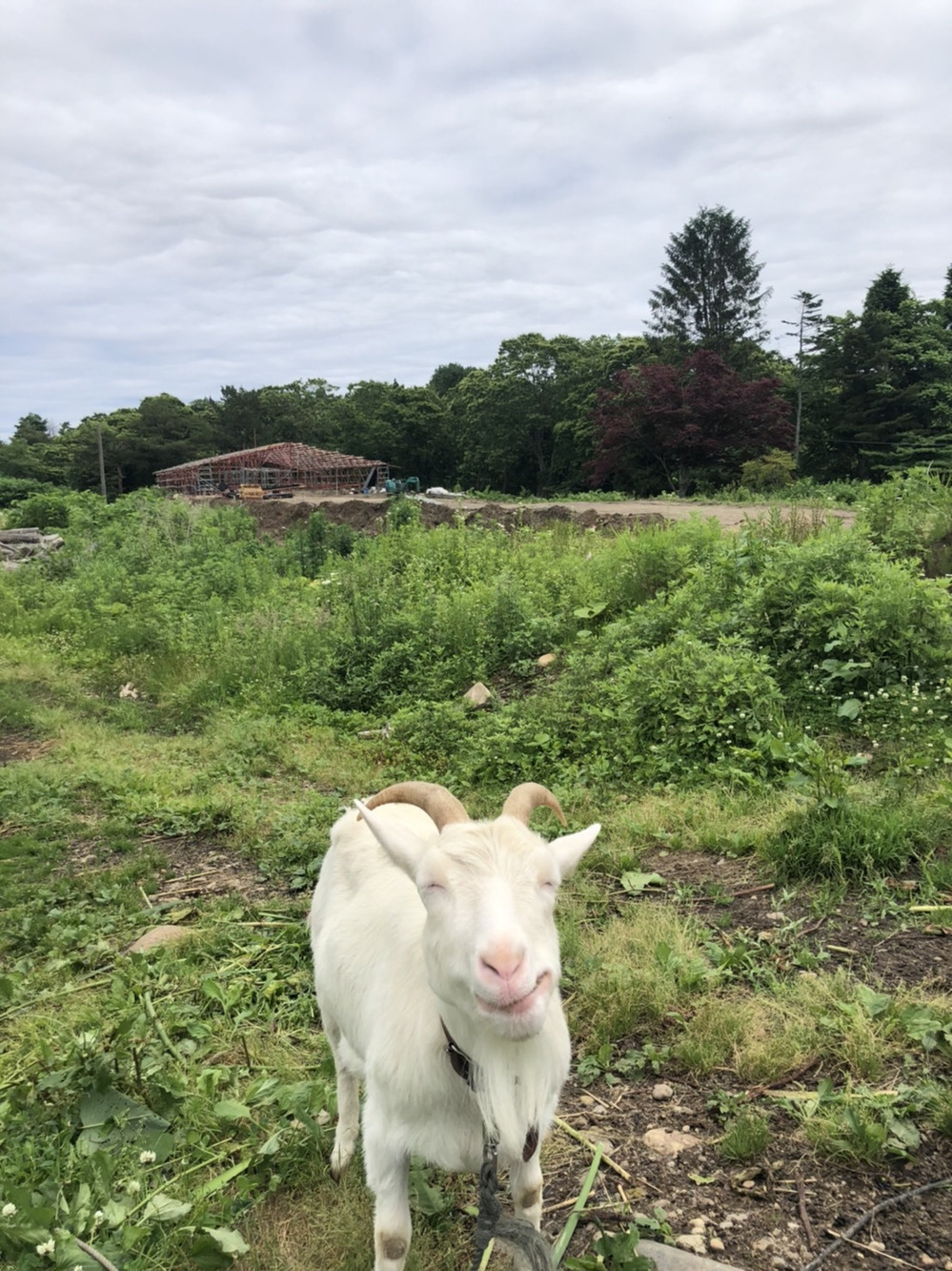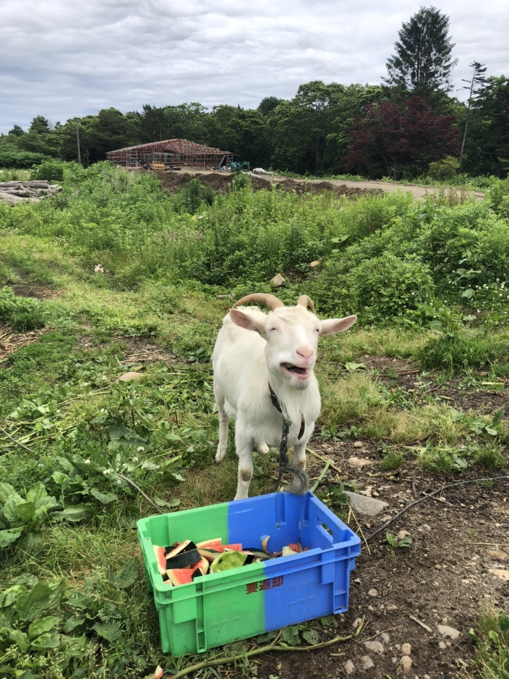 スイカの皮を 食べるエコなヤギです 生ごみが減って 助かってます