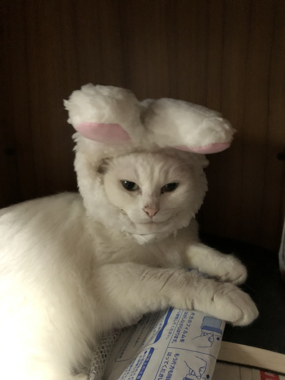 左は毛繕いしてるのかな?うさ耳やっぱりイヤかな?でもカメラ目線くれたんですね😊