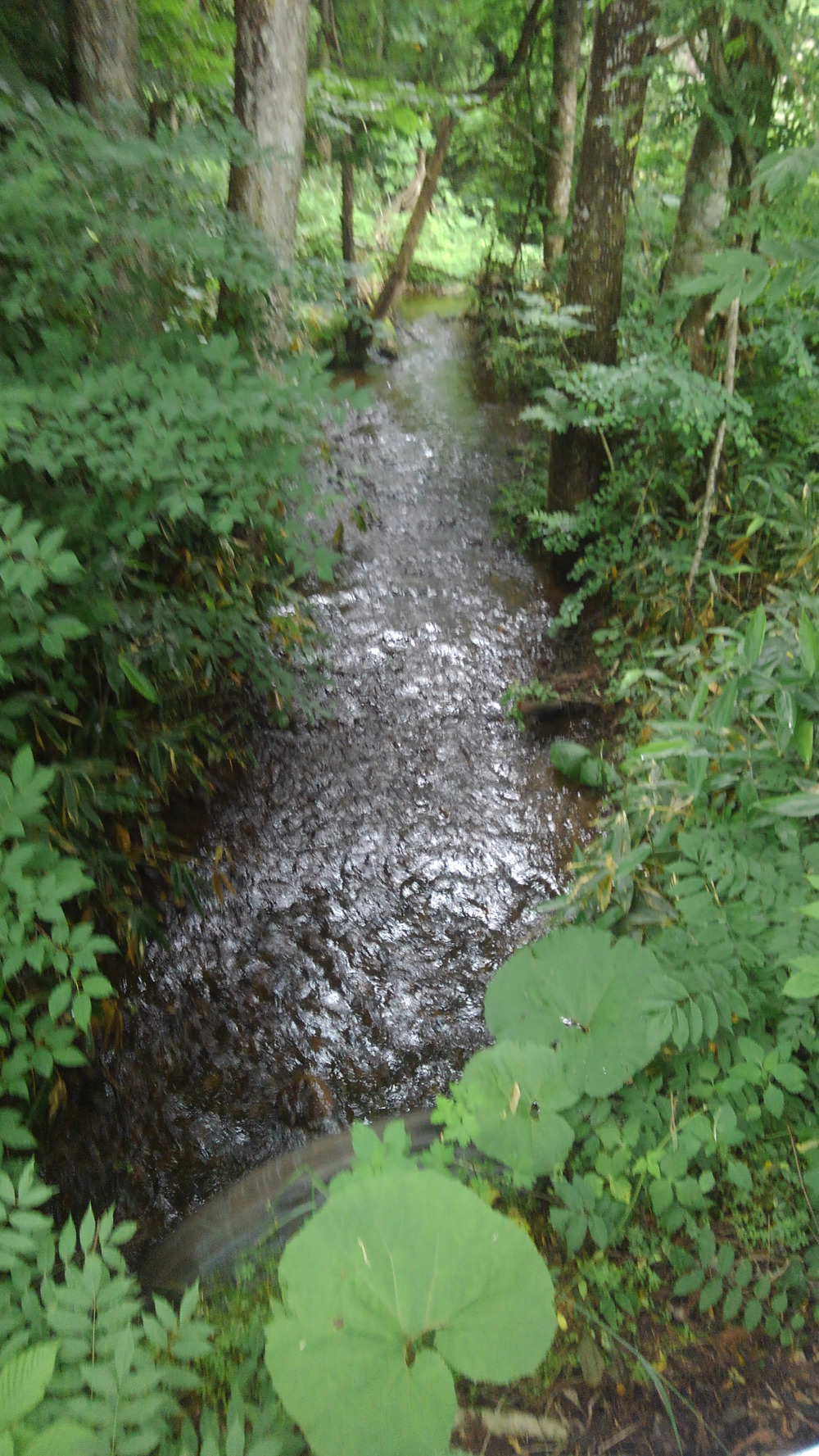 水量が少ないですが大変きれいな水です 鬱蒼とした森を通り 家の養殖場に 流れてきます