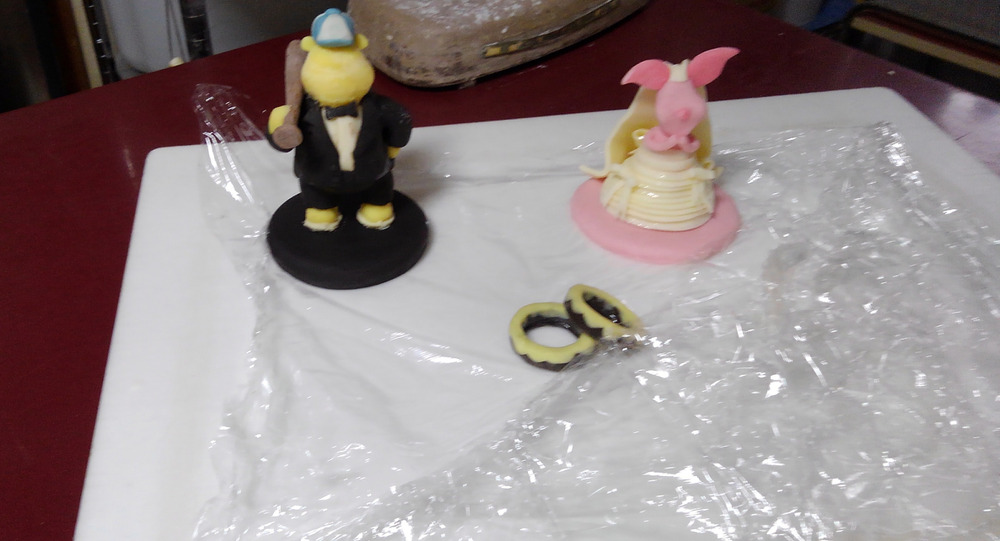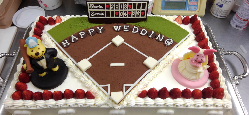 野球好き?おふたりのウエディングケーキですね♪大きなケーキを緻密に作っていくパティシエを見ることもなかなかない❗️極めるってすごいことです。