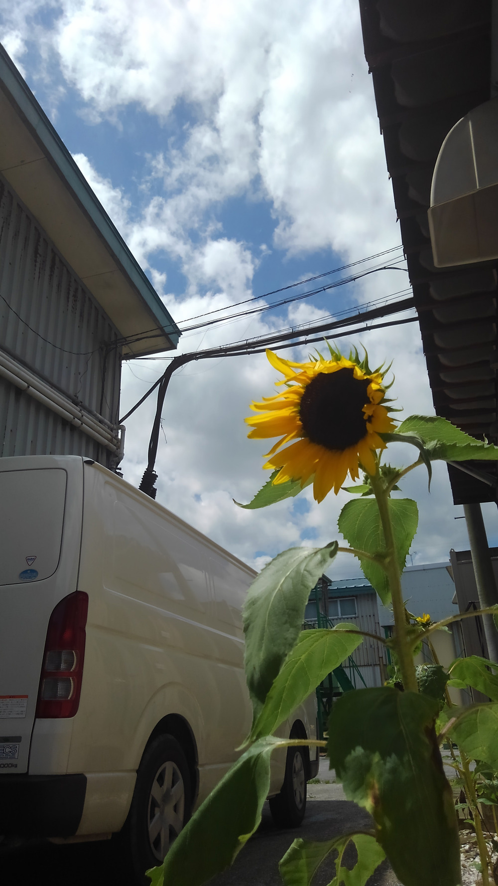 暑そうな青空とヒマワリ、夏を感じますね☀