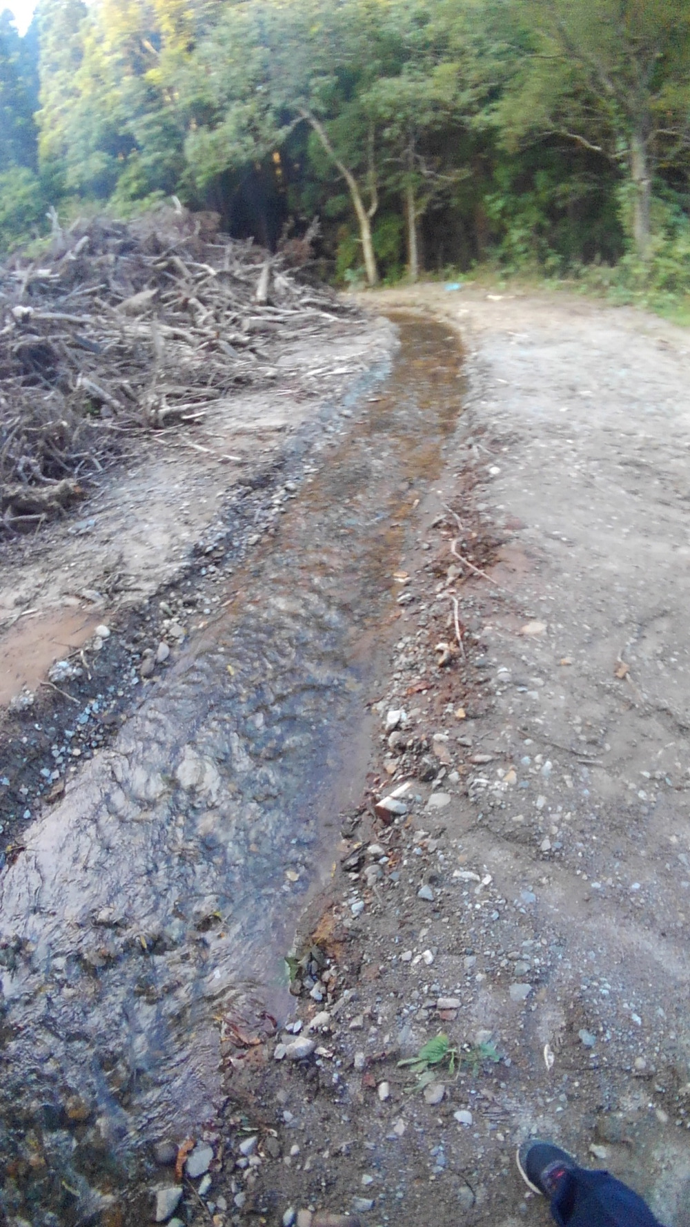 写真の道路は養殖場に入る道路ですが 家養殖場に入る入り口が2箇所あるため一箇所が手付かずのままです