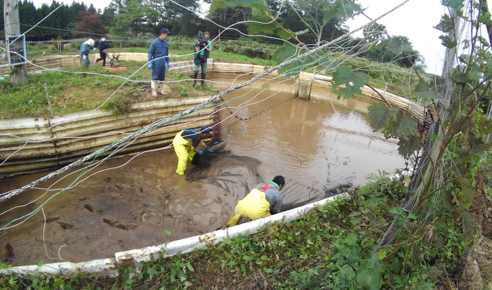 昨日は 泥の中から 残った魚を 網をかけ 数匹ですが 引き上げました こんなに 泥だらけの池でも 数匹 生きていた 奇跡の魚たちを 大切に育てたいと思います