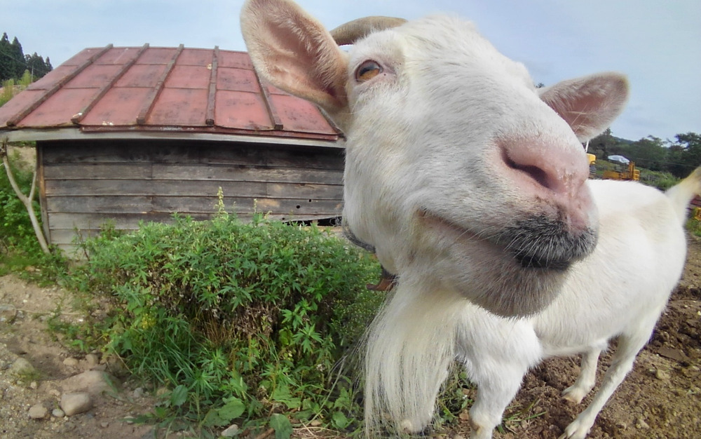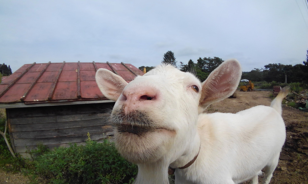 昨日、重機を ヤギの目の近くに 止めていたら 重機の油が口に付きお歯黒のようになってました😱